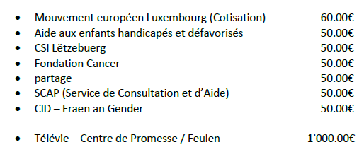 Le Conseil communal a unanimement décidé d’allouer un subside ou payer une cotisation aux associations / fondations suivantes :