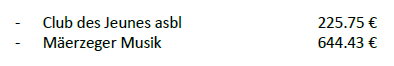 Le Conseil communal a unanimement décidé d’allouer un subside extraordinaire aux associations suivantes :
