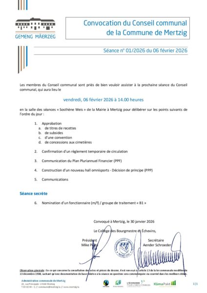 06.02.2026 – Réunion du Conseil communal